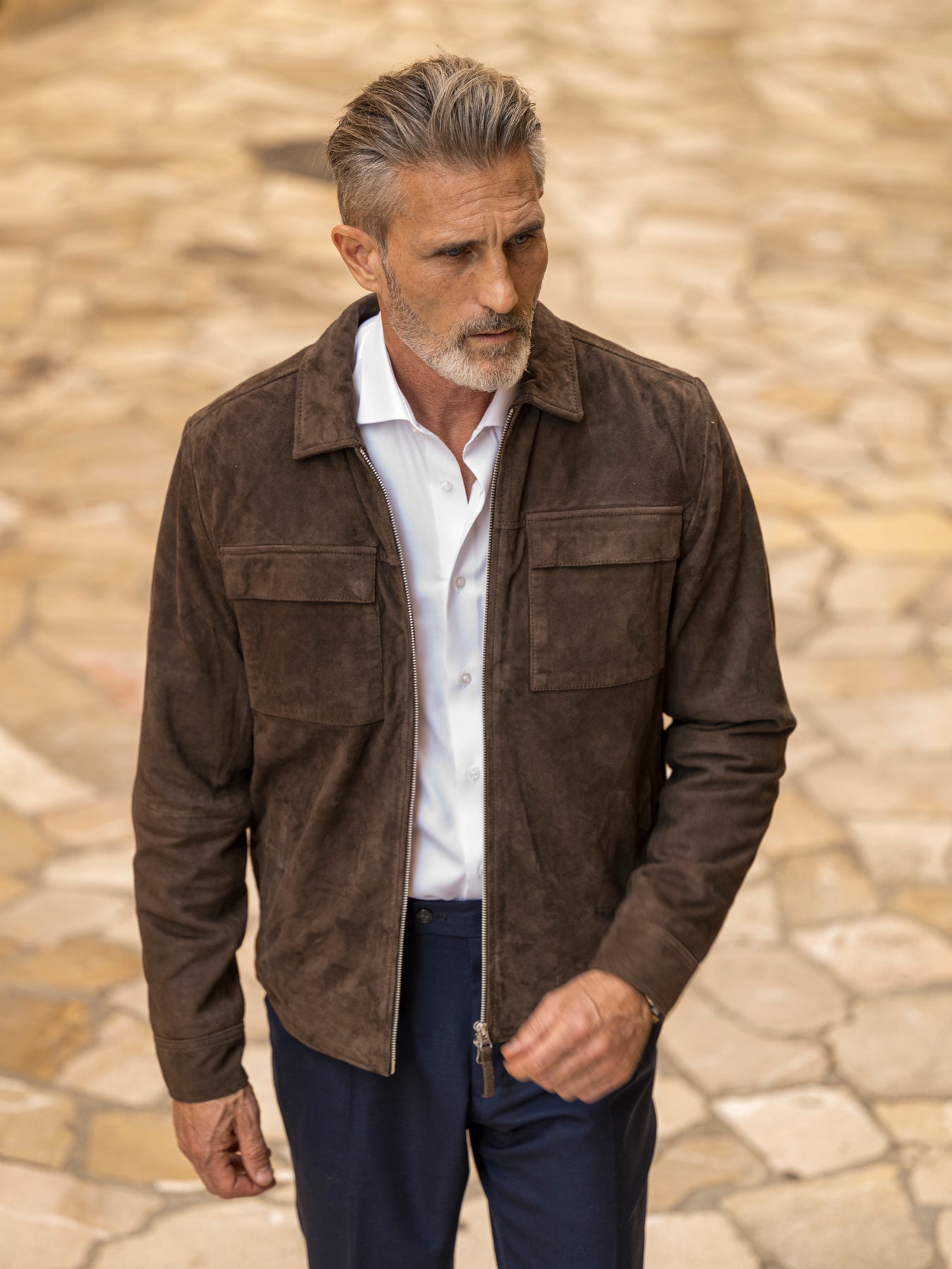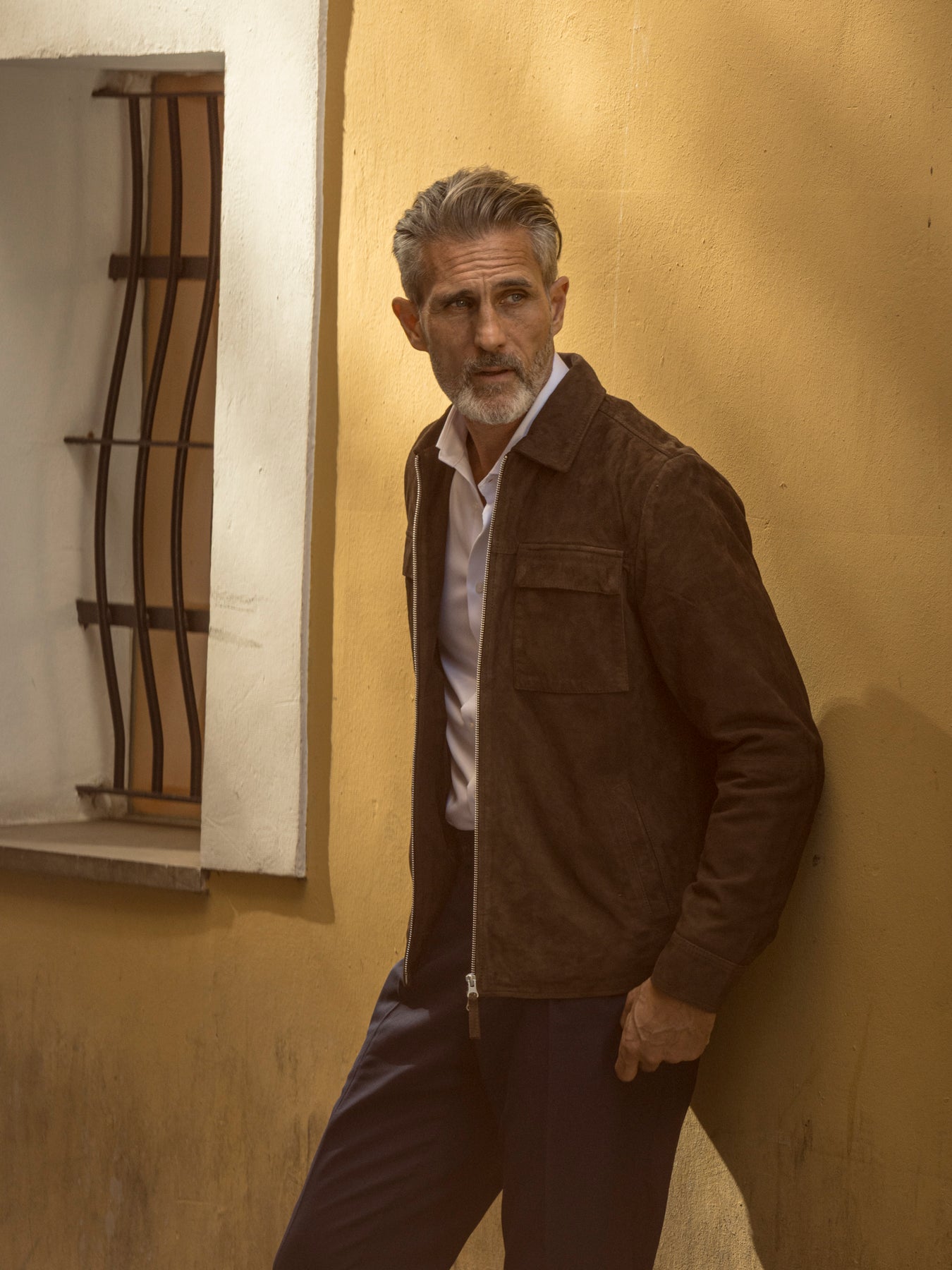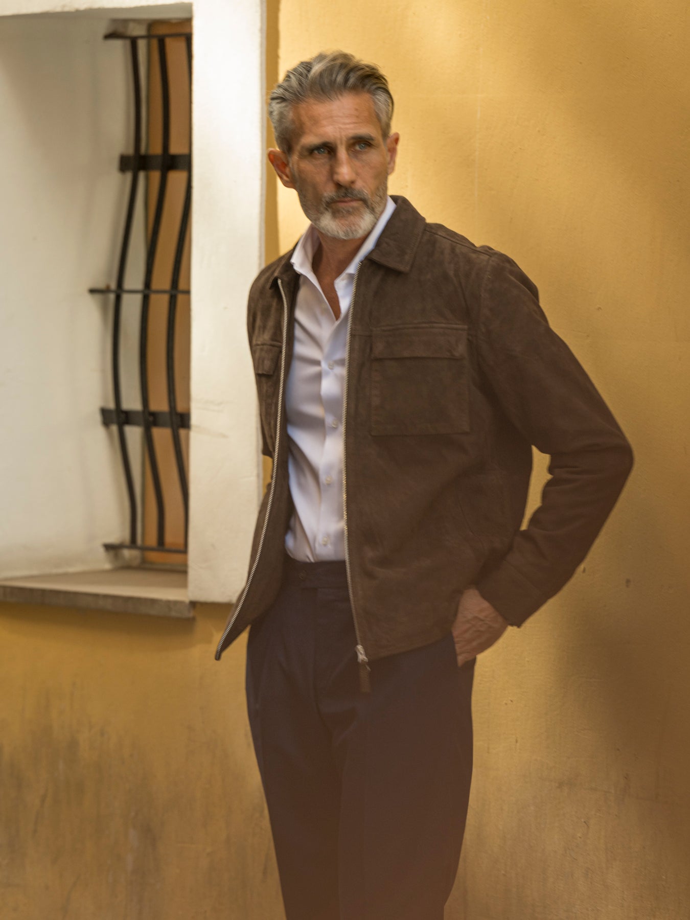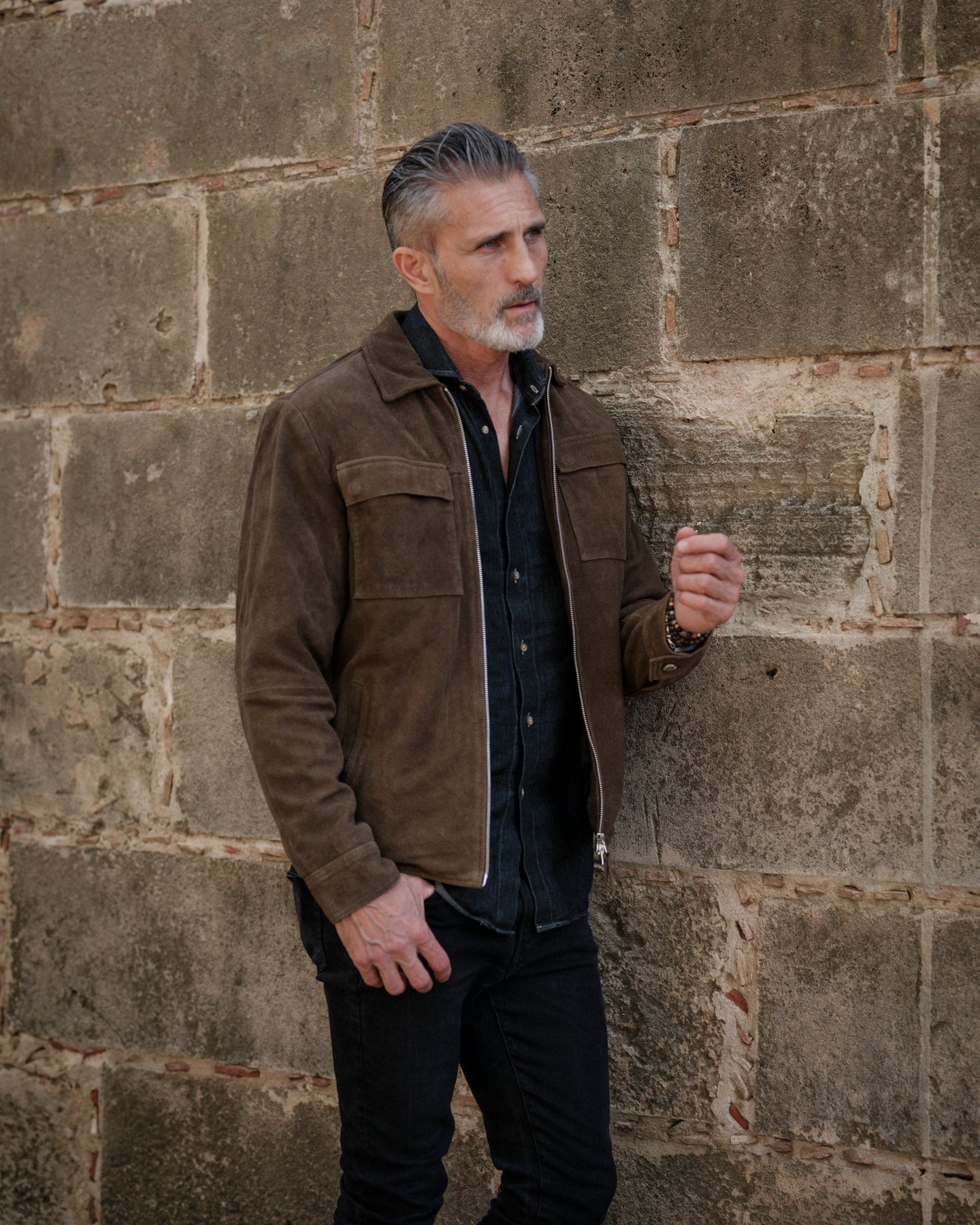 The Weston Suede jacket is crafted from premium cow suede, giving it a thick and weighty feel ideal for autumn weather. A versatile piece that works just as well for casual outfits as for more dressed-up looks. Designed with two large chest patch pockets, inner pockets, and a fit that allows room for layering when needed.